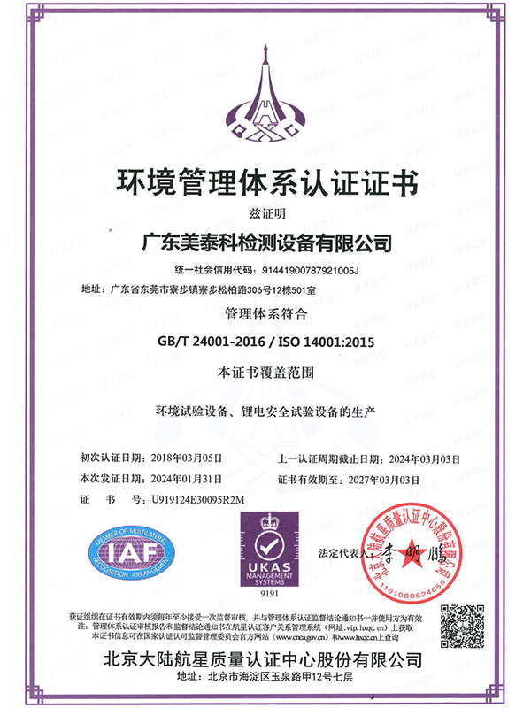 环境管理体系认证证书