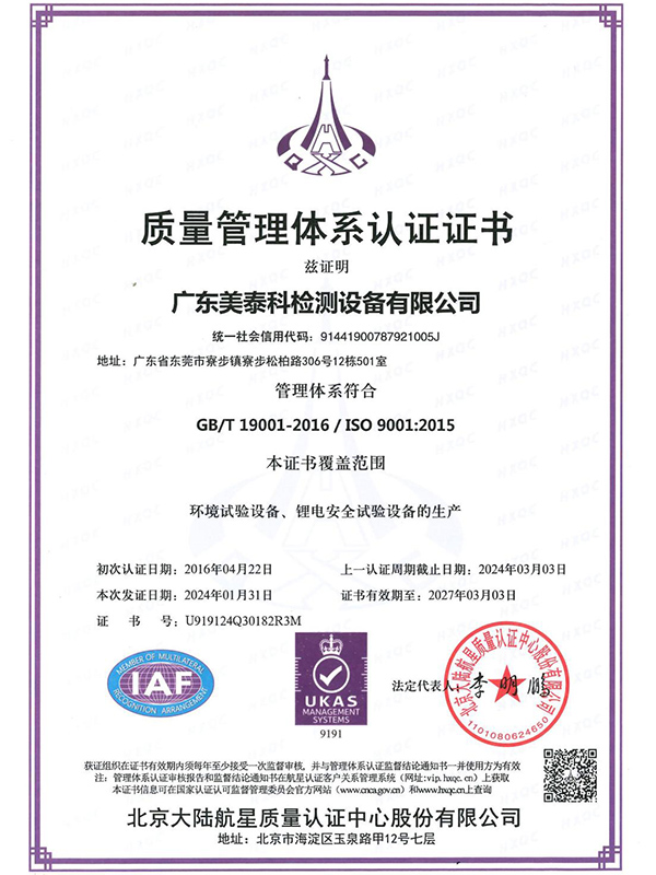 质量管理体系认证证书
